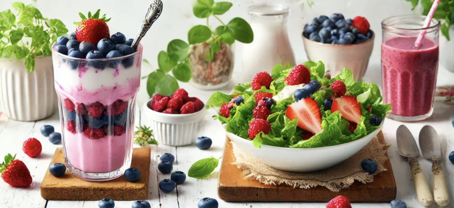 베리류는 비타민 C와 K, 섬유질, 안토시아닌 같은 항산화제가 풍부합니다. 칼로리가 낮고 영양가가 높습니다.